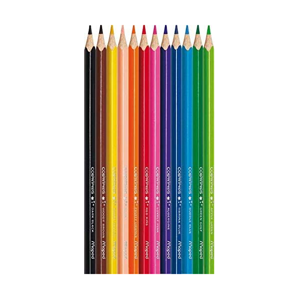Os lápis de cor Color'Peps da Maped têm uma forma triangular específica que os torna fáceis para as crianças segurarem. Feitos de madeira, esses lápis têm uma ponta macia e resistente e são fáceis de apontar para um uso diário simples e confortável.